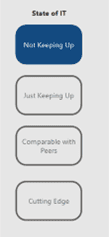 Select the option that best represents your perception of the State of IT for your organization. Only one selection will be registered, and that will determine the values for the subsequent inputs into the model. Engaging with one of our consultants will allow you to further refine your inputs. More detailed descriptions of these State of IT selections are denoted below: